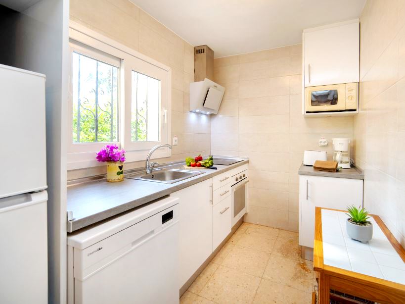 Kitchen is equipped with fridge, microwave, oven, freezer, washing machine, dishwasher, crockery/cutlery, kitchen utensils, toaster and kettle.