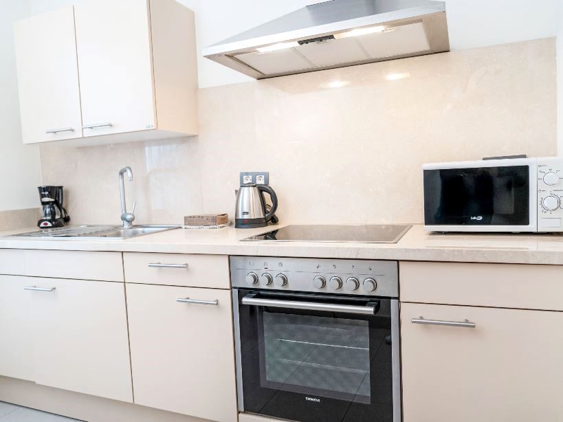 The kitchen is equipped with a fridge, microwave, oven, freezer, washing machine, dishwasher, crockery/cutlery, kitchen utensils, toaster and kettle.