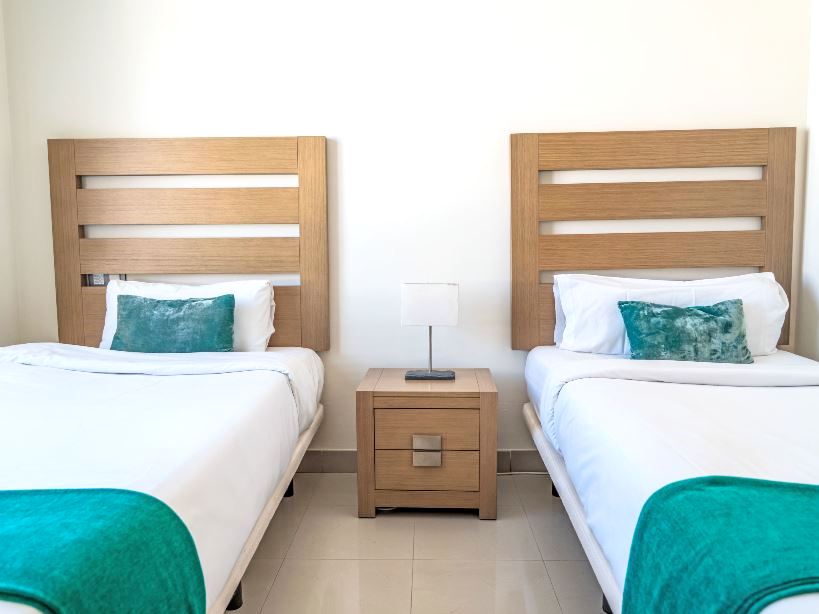 The apartment is located in a private residential area.
