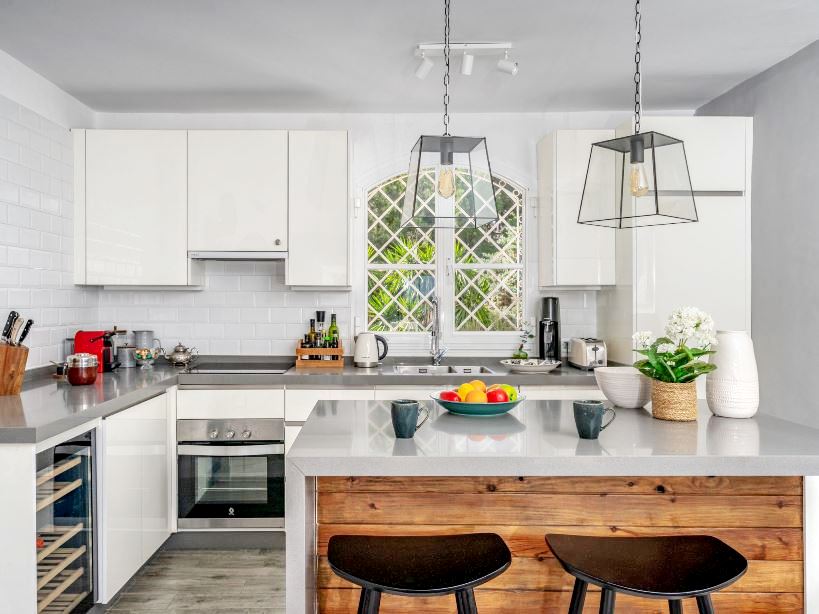 The kitchen is equipped with a fridge, microwave, oven, freezer, washing machine, dishwasher, crockery/cutlery, kitchen utensils, toaster and kettle.